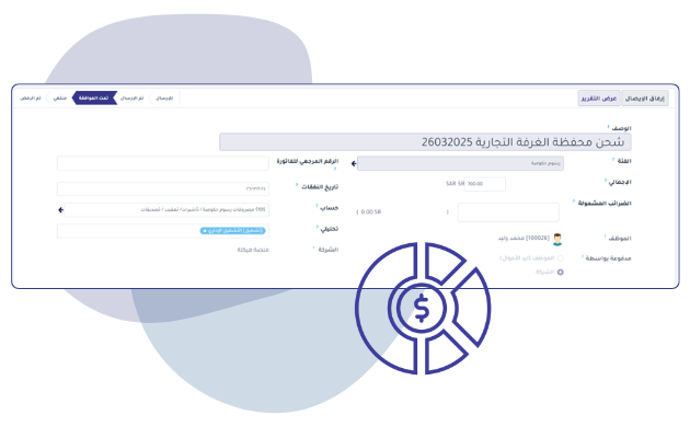 إدارة التفاصيل المالية و سجلات المصروفات المنشاة للموظف و متابعة عمليات المصروفات بشكل كامل