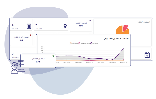 Dashboard that shows the attendance management the details and comprehensive information of the employees’ attendance details.