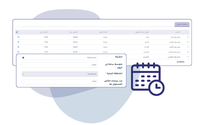 Determine the employee’s location and the time required for his presence during the work period, which requires him to record his attendance and departure, with the possibility of specifying more than one location for the employee .