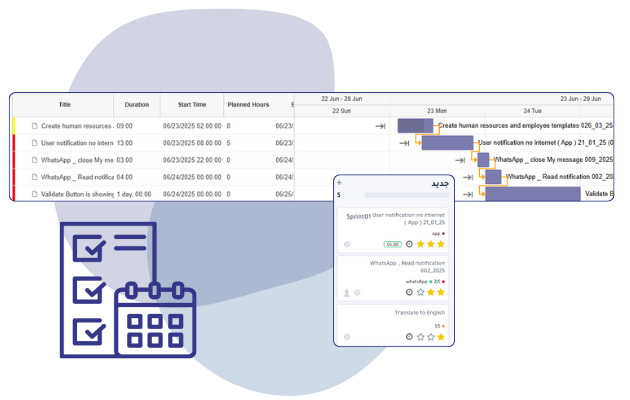 يمكن هيكلة من تنوع طرق عرض المهام والمتابعة من خلال آلية كانبان او عن طريق Gant Chart وفقاً لآلية عمل كل مشروع.