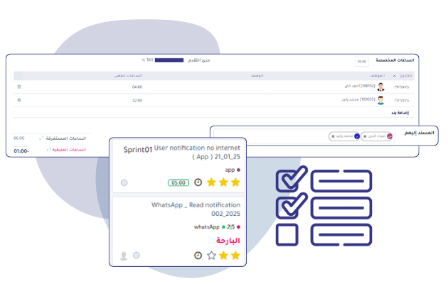 إلتوفير مرونة أعلى يسمح هيكلة بتعيين شخص او أكثر لتأدية مهمة واحدة مع احتساب الاوقات الزمنية المنفذة لكل شخص على حدى لضمان عملية احتساب تفاصيل التنفيذ لهذه المهمة